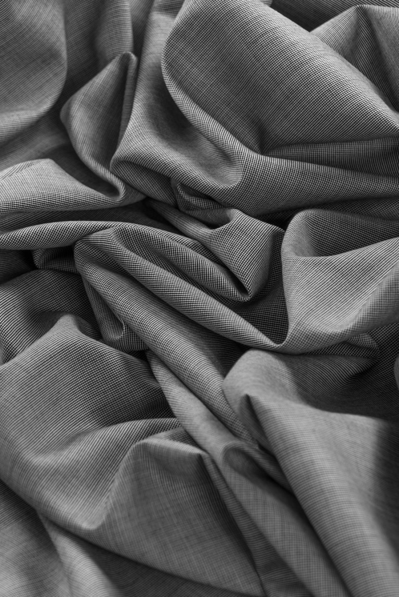 Olasz, klasszikus jelmezszövet egy kis, fekete-fehér kocka motívumával. 100% -ban természetes gyapjúból szőtt.