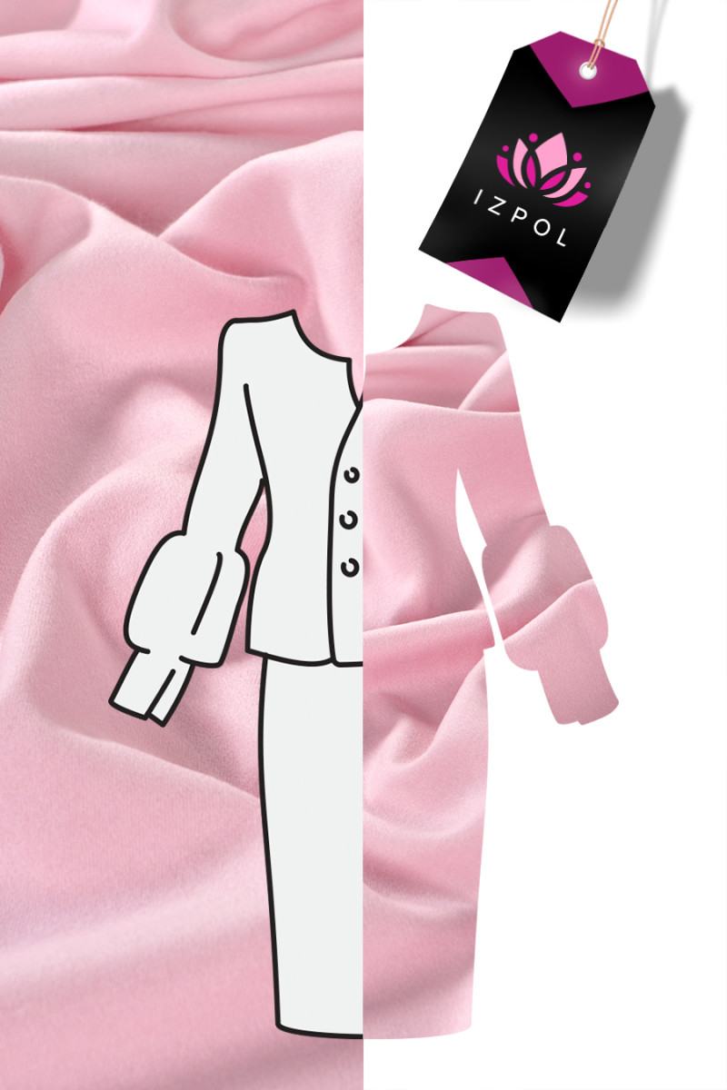Az őszi-téli fajok olasz jelmez gyapjúja világos rózsaszínben. A szövet nagyon kellemes tapintású, finom bolyhos a jobb oldalon, az angóra hozzáadása nagyon puha és könnyű.