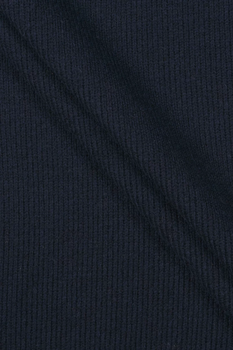Olasz, vastag pulóver gyapjú sötét sötétkék színben. Egy "kettős" szövet, amelynek egyik oldalán bordázott szövés van (0,5 cm), a másik pedig sima, párolt gyapjúhoz hasonlít.