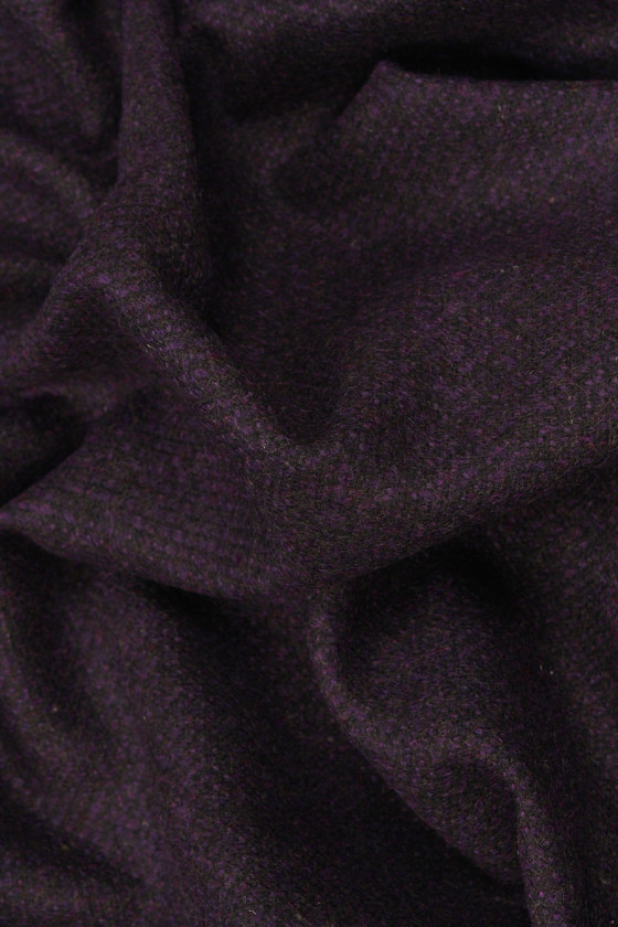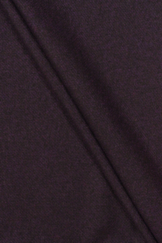 Olasz gyapjúszövet fekete és lila színben, sima szövéssel, finom halommal. Az őszi-téli műfaj szövete.