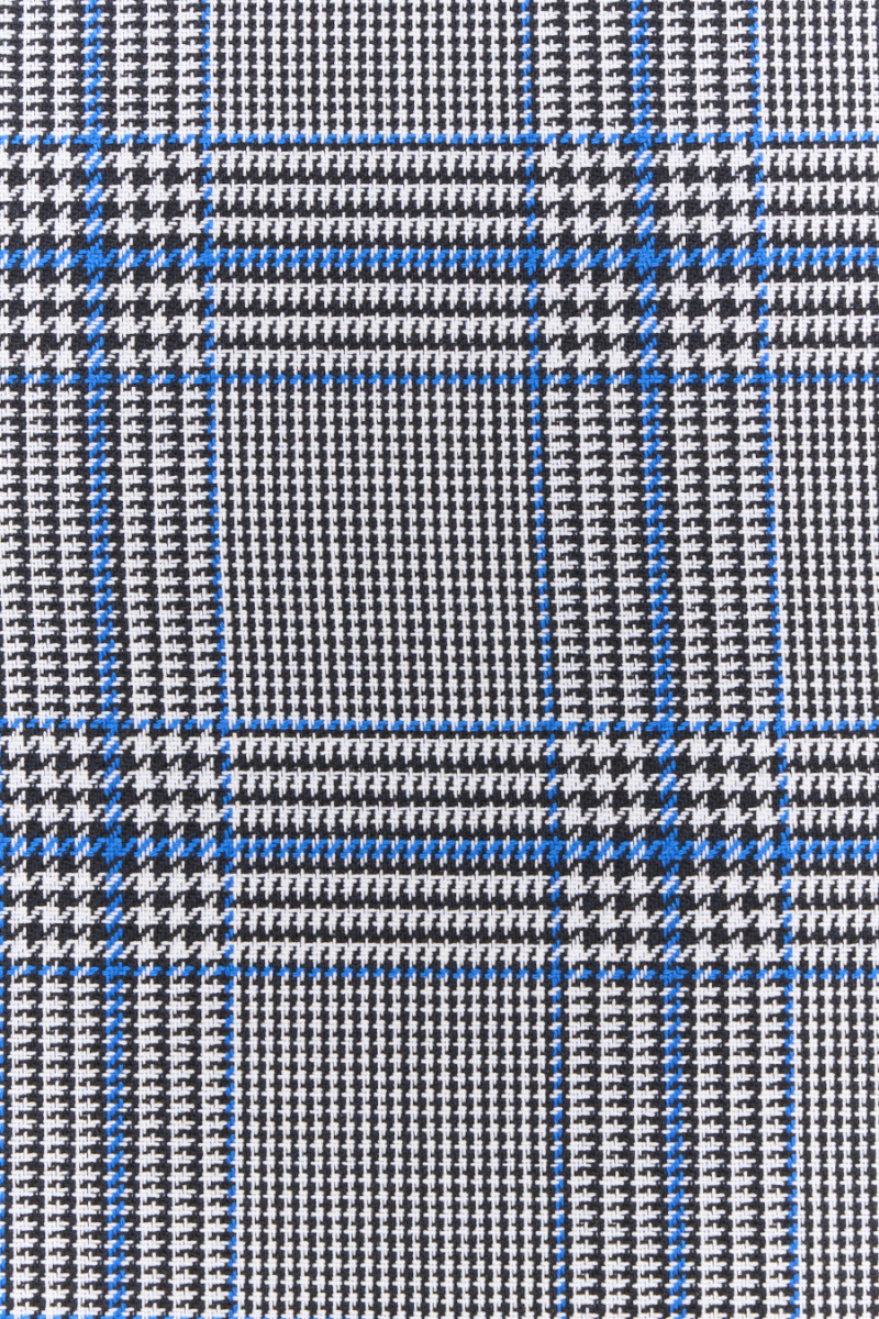 Kiváló minőségű olasz jelmezszövet, nagy kék kockás motívummal, krémfekete alapon. Vastagabb, nem rugalmas anyag, őszi-téli fajta, kétoldalas - a másik oldal kék színű. Rács mérete 10cm * 10cm. Fantasztikus javaslat kabát, ruha vagy szoknya létrehozására.