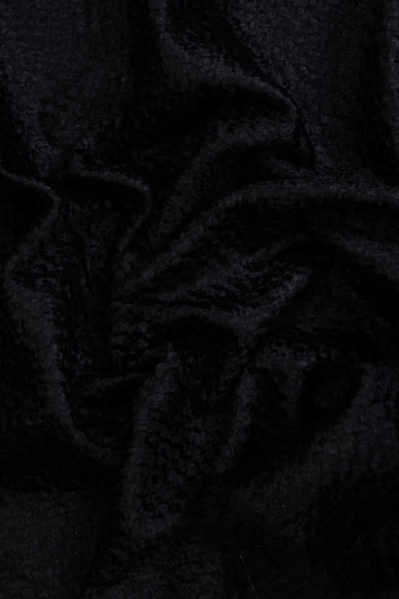 Olasz karakul típusú kabátszövet fekete színben. Szövet jellegzetes hullámos halommal, természetes gyapjúból és mohairből szőtt. Tökéletes felsőruházathoz, például kabáthoz, kabáthoz, mellényhez. Vegytisztítás ajánlott.