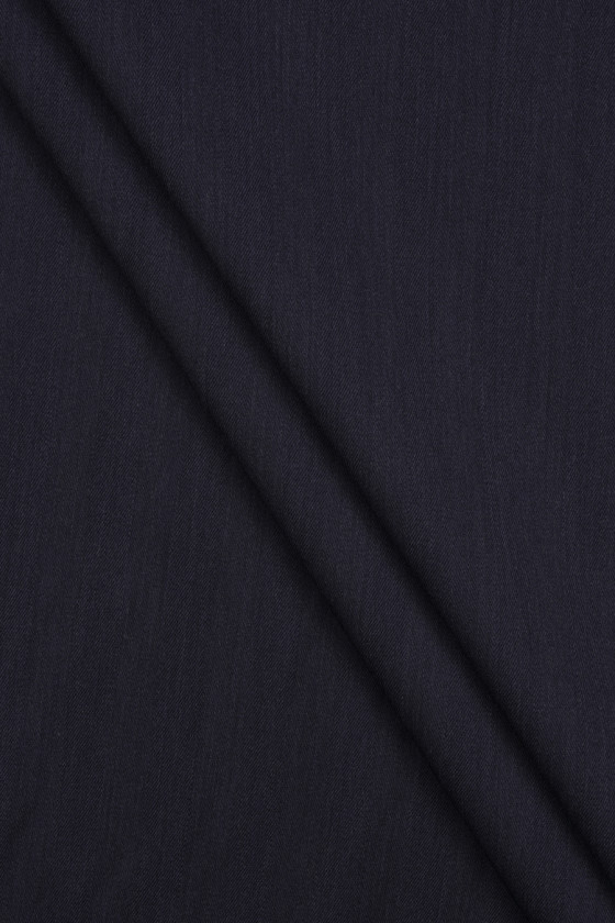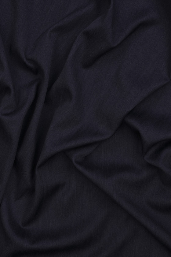Olasz jelmezszövet gyapjúból és selyemből szőtt sötétkék színben, azonos színű csíkokkal. 2 cm széles csíkok. Nagyon jó minőségű anyag, puha, nagyon húsos, rugalmatlan. Tökéletes jelmez, öltöny, nadrág, szoknya, ruha varrásához.