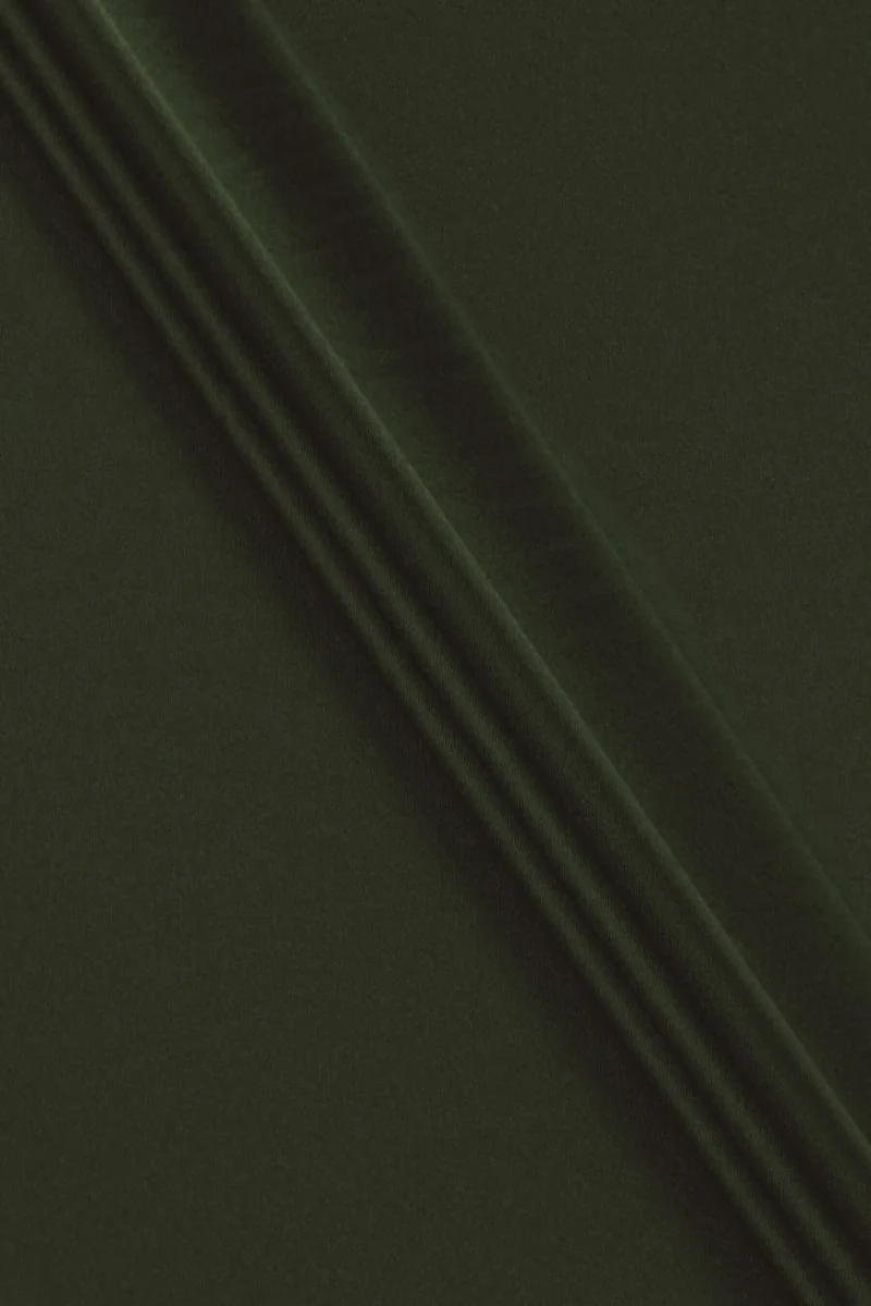 Olasz jelmezszövet természetes gyapjúból, poliamid és elasztán keverékével, üvegzöld réteggel. Az anyag vastagabb, enyhén twill szövéssel, rugalmas, és flanellre emlékeztet. Tökéletes őszi és téli ruhák varrásához, mint például: ruha, szoknyia, dzsek. Nagyszerű ajánlat azoknak, akik értékelik a jó anyagokat.