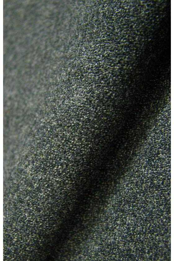Közepes vastagságú olasz kosztümszövet szürke melange színben, egy csepp zölddel. 100% -ban természetes gyapjúból szőtt.