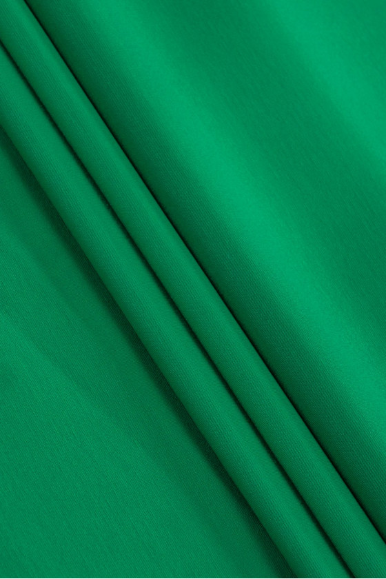 Kompakt, rugalmas jersey kötött anyag világos zöld színben. Tartalma: 70% viszkóz, 24% poliészter, 6% elasztán. A kötött anyag súlya 260g/m2. Kényelmes ruhák - ruhák, szoknyák, tréningruhák - varrására ajánljuk. Zsugorodás mosás után +-10%
