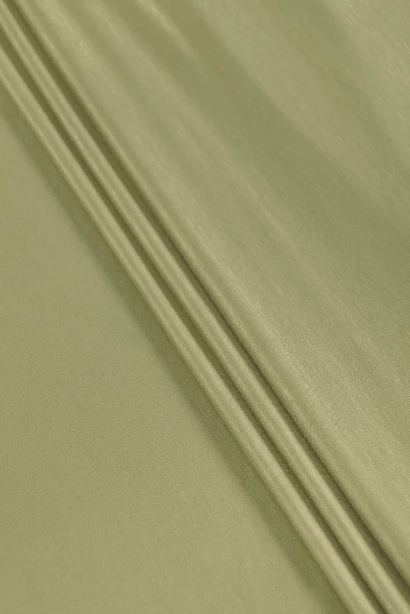 Olasz viszkóz kötött anyag piszkos, világos zöld - nagyon jó minőségű. Húsos, rugalmas, enyhe fényű. Tökéletes blúz vagy póló varrásához.