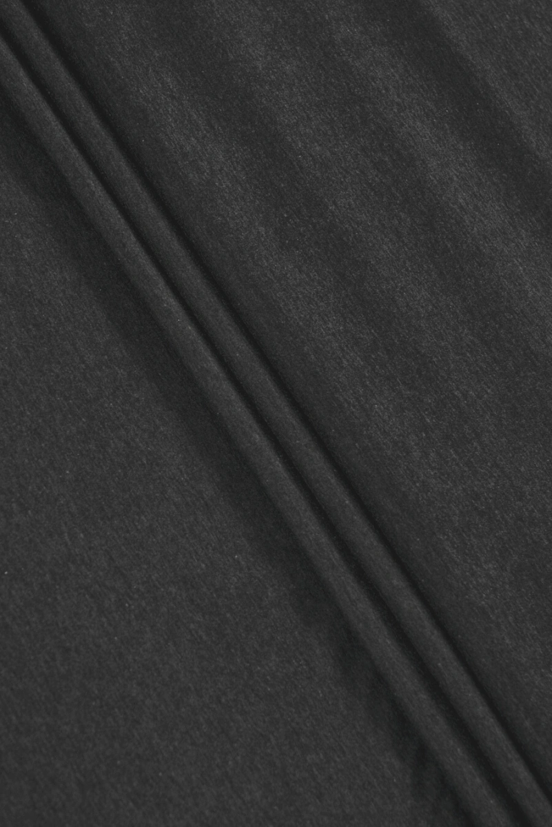 Olasz mez kötött anyag sötét grafitban, melange. A kötött anyag közepes vastagságú, rugalmas és matt. Kényelmes ruhák - ruhák, szoknyák, tréningruhák - varrására ajánljuk. Nagyon jól fog működni a felszerelt ruházat varrásában is.
