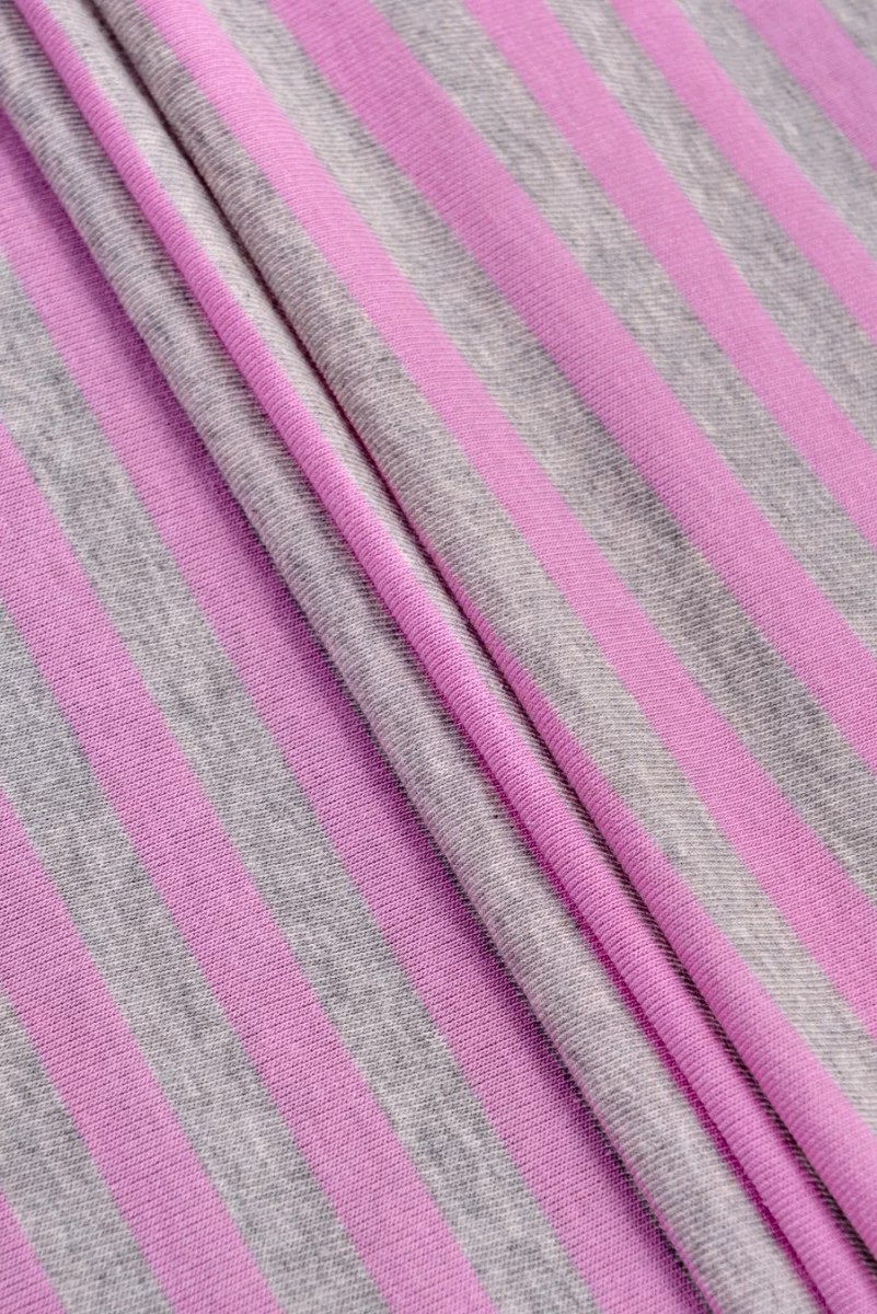 Olasz viszkóz kötöttáru szürke és rózsaszín csíkokkal - nagyon jó minőségű. Tökéletes blúz vagy póló varrásához.