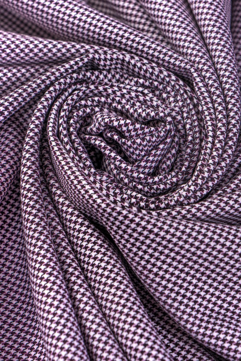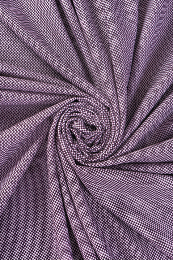 Olasz jelmezszövet - egy vékony csirkeláb motívuma. Rugalmas anyag, amely ideális jelmez, ruha, nadrág, szoknya, öltöny varrásához. Színek: fehér, fekete, lila