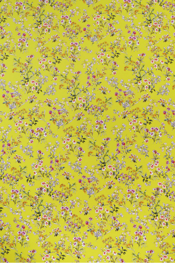 Olasz poliészter szatén kis, fényes virágokkal, sárga alapon. A poliészter szatén bársonyos anyag, finom fényű. A természetes szövetekkel ellentétben nem gyűrődik és tartósabb. Tökéletes ruha, blúz, ing, szoknya vagy kendő varrásához.