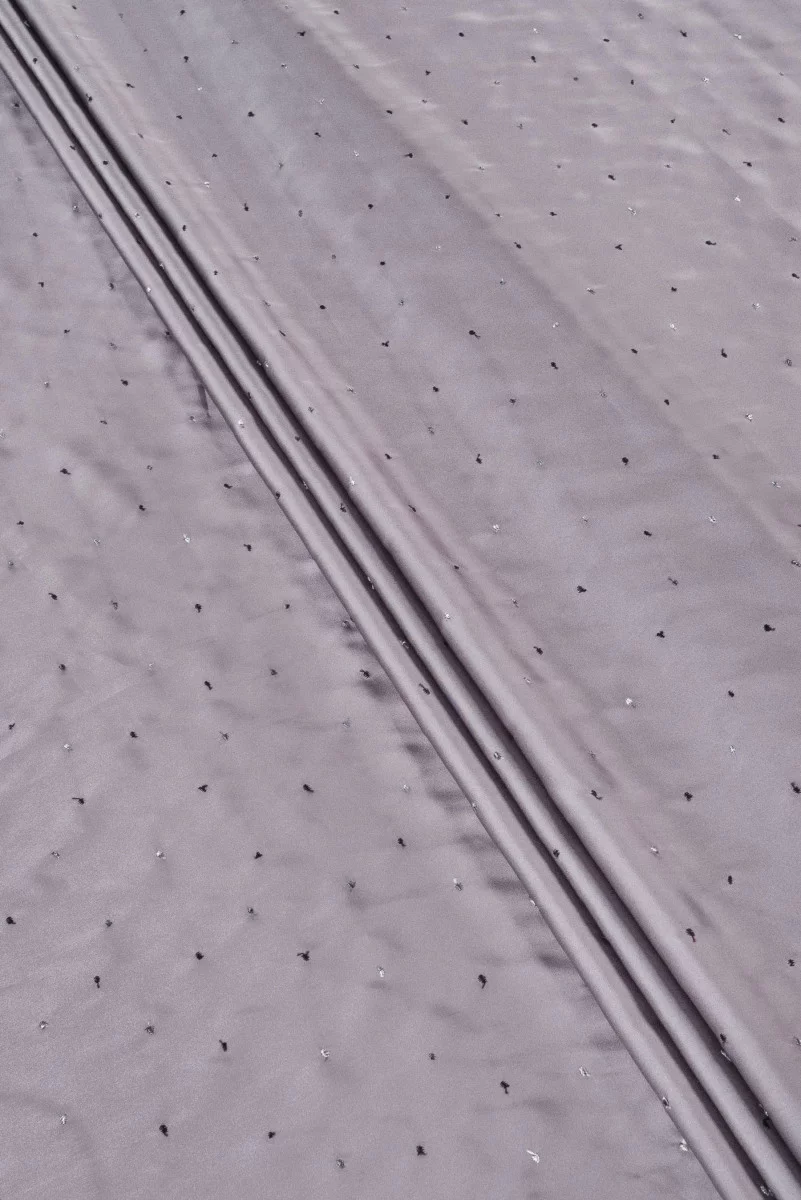 Olasz poliészter szatén lila és szürke színben, hímzett, kis pontokkal.