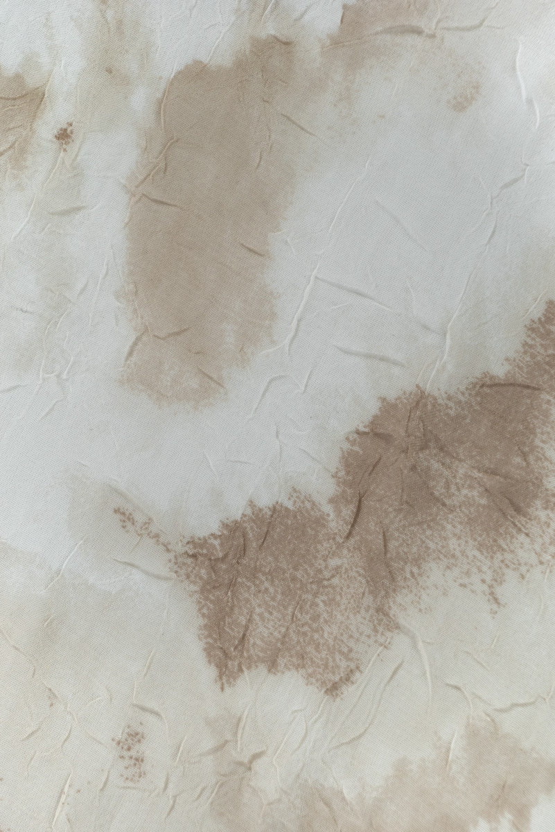 Olasz poliészter sifon márványszerű motívummal, krém-bézs színben, a szövet nagyon eredeti, gyűrött szerkezetű. A sifon nagyon finom, tágas és átlátszó anyag. Tökéletes tágas ruhákhoz és blúzokhoz. Nem rugalmas anyag.