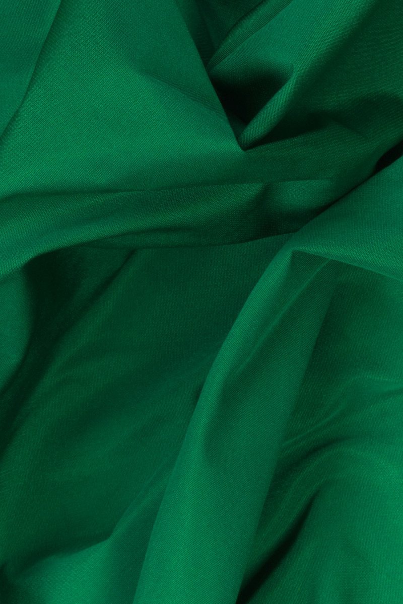 Olasz poliészter taft szövet zöld színben. A taft egy vékony, de merev anyag, jellegzetes finom ragyogással.
