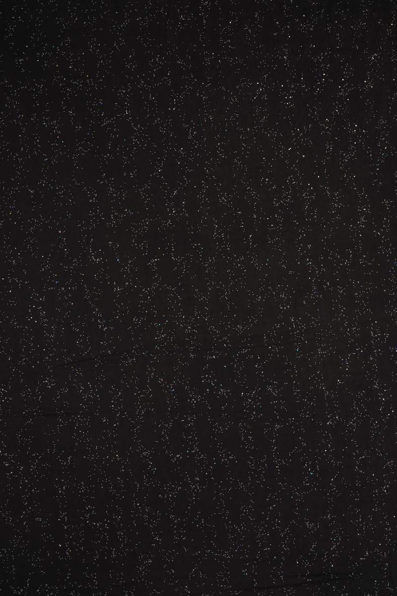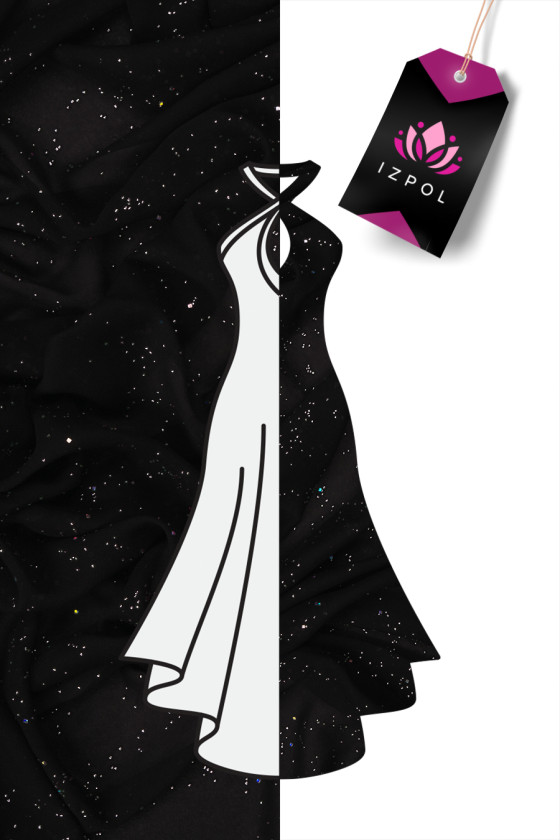 Olasz poliészter sifon fekete színes, kis díszítéssel. Vékony, átlátszó, puha és nem rugalmas anyag - tökéletes ruha, blúz, szoknya vagy kendő varrásához.