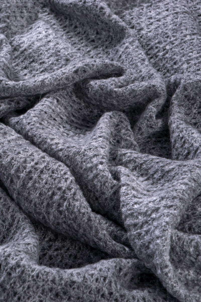 Áttört pulóver kötött anyag szürke színben. Lazán szőtt akril- és gyapjúszálakból.