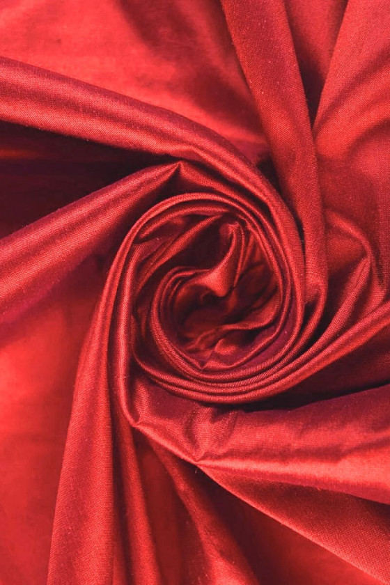 Olasz 100% selyem shantung szövet világosvörös színben. Simább anyag, finom sűrűséggel, enyhén merev. Alkalmas ruhákhoz és belsőépítészethez - függönyökhöz, párnákhoz stb. Csak vegytisztítás!