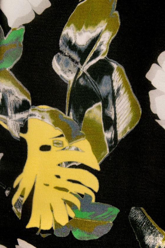 Gyönyörű, olasz selyem sifon, nagy levelekkel, visszafogott színekkel - olíva, sötétzöld, mustár. Az anyag 100% -ban természetes, matt, félig átlátszó, finom tapintású, lágy drapériák. Tágas blúzok, ruhák, tunikák, szoknyák vagy sálak varrására ajánljuk.