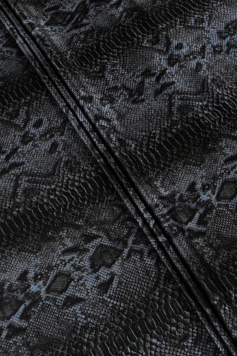 Olasz szatén 100% selyem, kígyóbőr motívummal, szürke és fekete színben. A selyemszatén finom anyag, bársonyos tapintású, enyhe ragyogással.