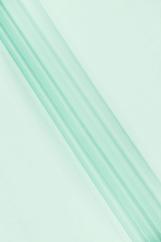 Olasz 100% selyem organza szövet pasztell türkizben. A természetes selyemorganza vékony, átlátszó, de merev anyag, finom ragyogással, amely a selyemszövetekre jellemző. Tökéletes ruha, blúz, ing, szoknya varrásához.