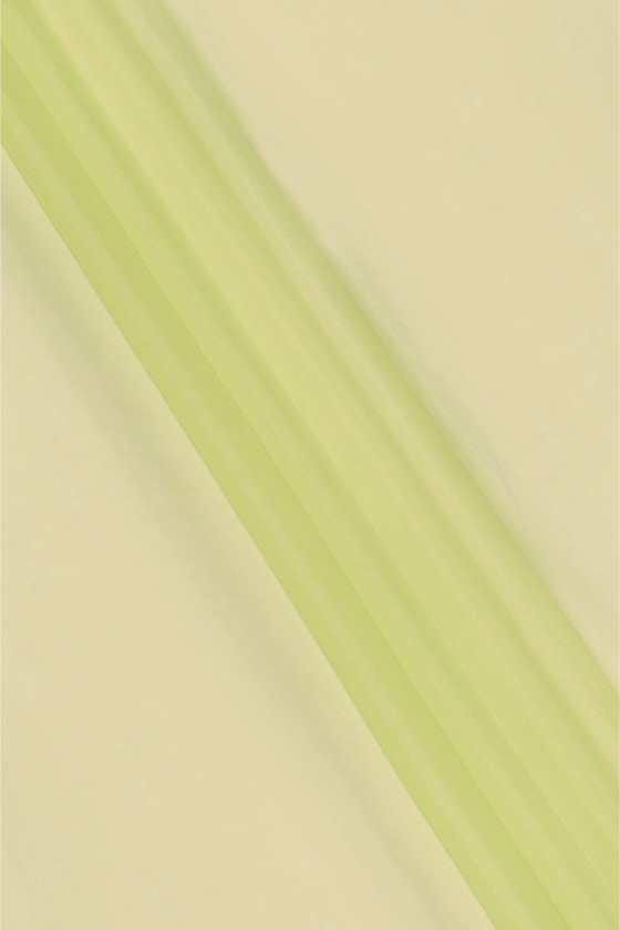 Olasz 100% selyem organza szövet lime zöld színben A természetes selyemből készült organza vékony, átlátszó, de merev anyag, finom ragyogással, amely a selyemszövetekre jellemző. Tökéletes ruha, blúz, ing, szoknya varrásához.