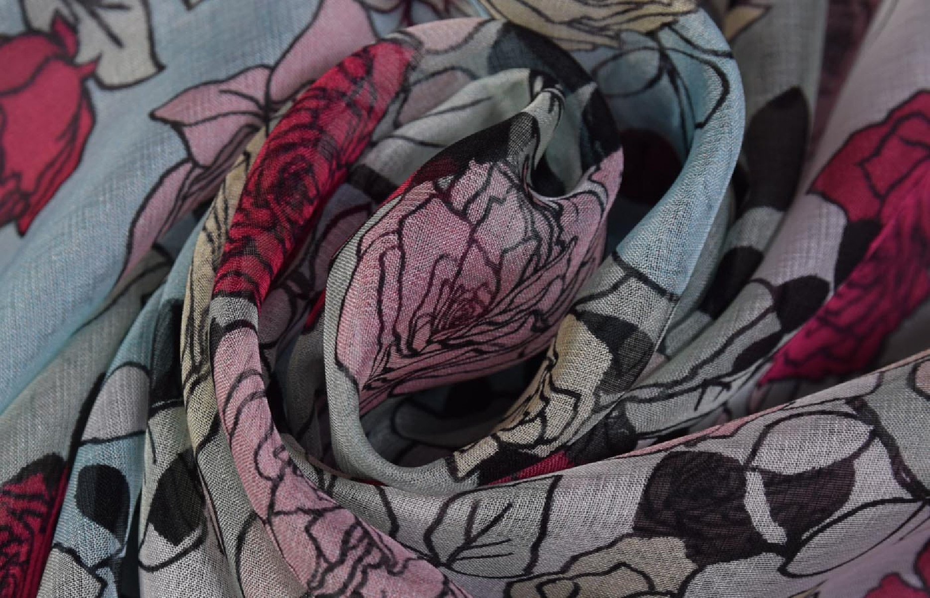 Gyönyörű virágos sifon természetes selyemből. Nagyon tágas, finom. Tökéletes ruhákhoz és blúzokhoz. A virág mérete kb. 3 cm.