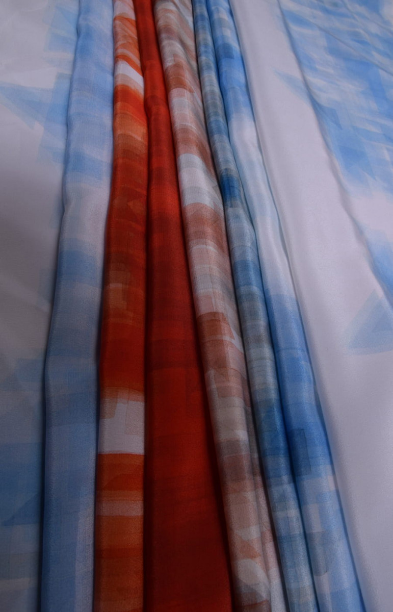 A gyönyörű aláírt selyem krepp egy természetes, finom, vékony, de átlátszatlan, félig matt anyag. Használható szellős ruhák, finom blúzok, sálak, sálak varázsolására is. Színek: ekrü, kék, piros