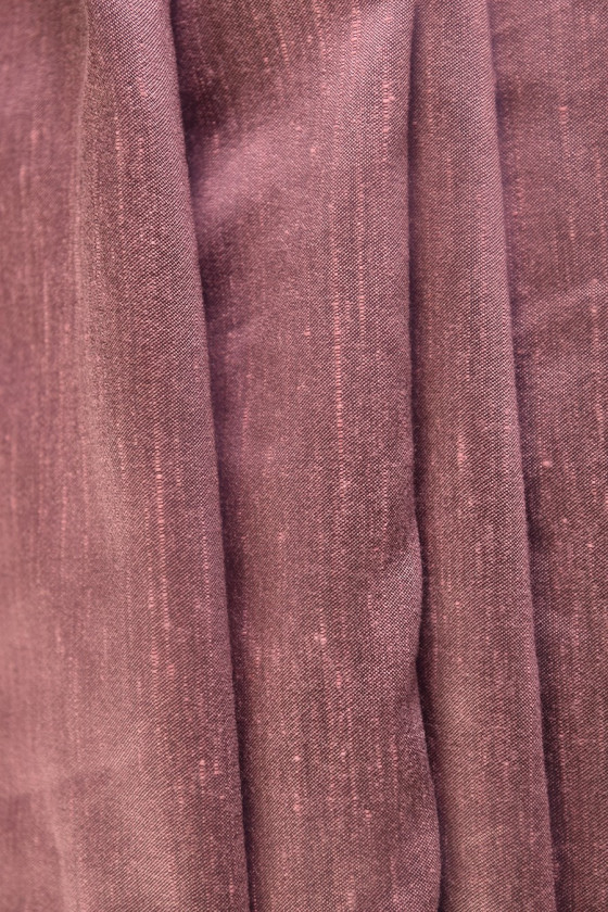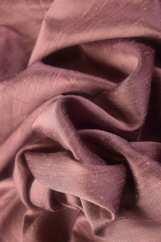 Kéthangú viszkóz (rózsaszín és fekete szál) ala shantung, klasszikus, elsődleges szövéssel, "barbs" -val. Puha szövet, műanyag szerkezetű. Alkalmas ruhákhoz és belsőépítészethez - függönyökhöz, párnákhoz stb. Csak vegytisztítás