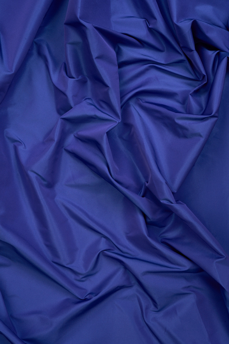 Olasz poliészter taft szövet, amely két színű szálból szőtt - sötétebb és világoskék, kéthangú hatást eredményezve. A taft vékony, de merev anyag, finom fényű. Tökéletes ruha, blúz, ing, szoknya varrásához.