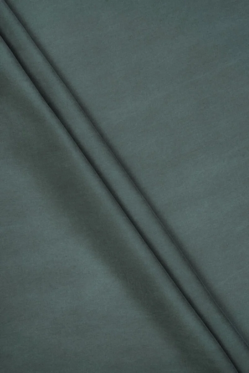 Sima, átlátszatlan szövet lyocell, viszkóz és elasztán keverékéből, sötétszürke-zöld színben. Az anyag közepes vastagságú, rugalmas, folyékony, rendkívül kellemes fogású és finom fényű. Az anyag tökéletes a mindennapi ruházathoz. Használható blúz, szoknya, ruha, valamint bő nadrág varrására.