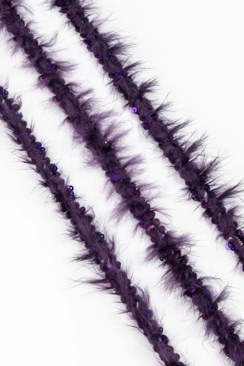 Szalag nyúlszőrrel és flitterekkel lila