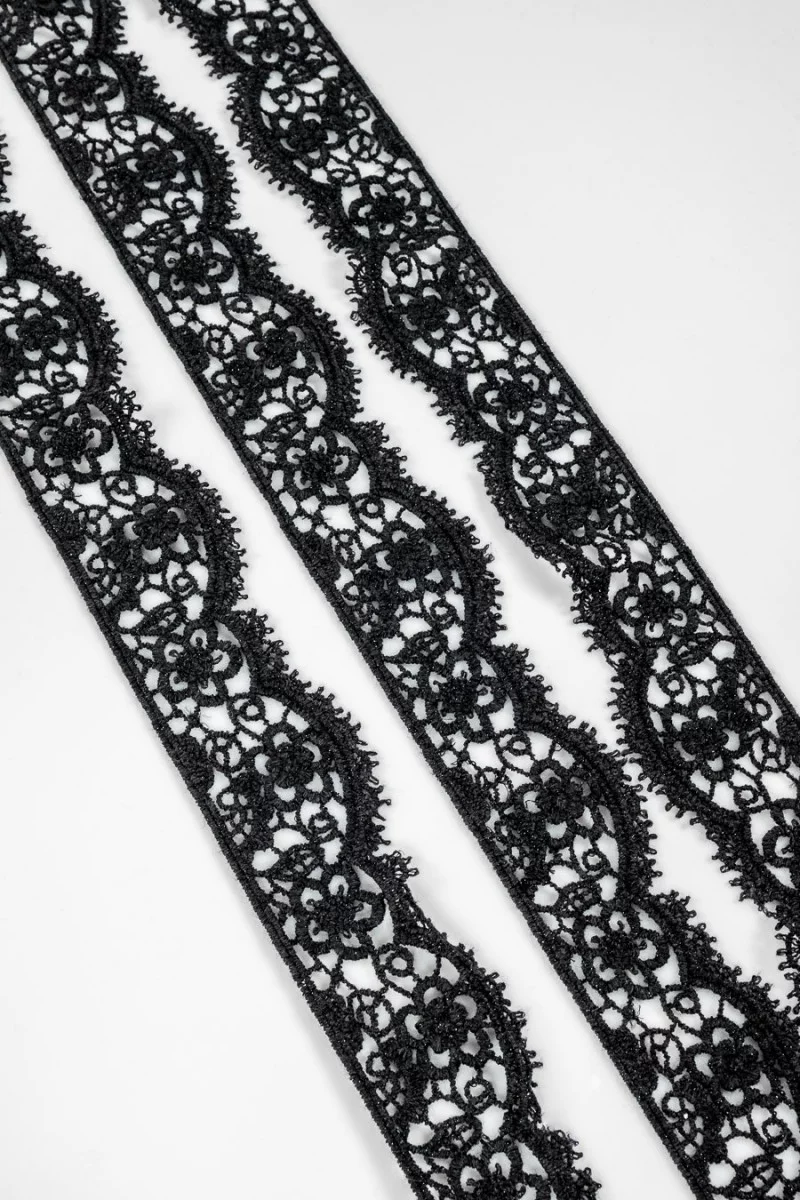 Grafitszínű guipure szalag, lurex szállal átszőve. Tökéletes ruhák és szoknyák befejezéséhez.