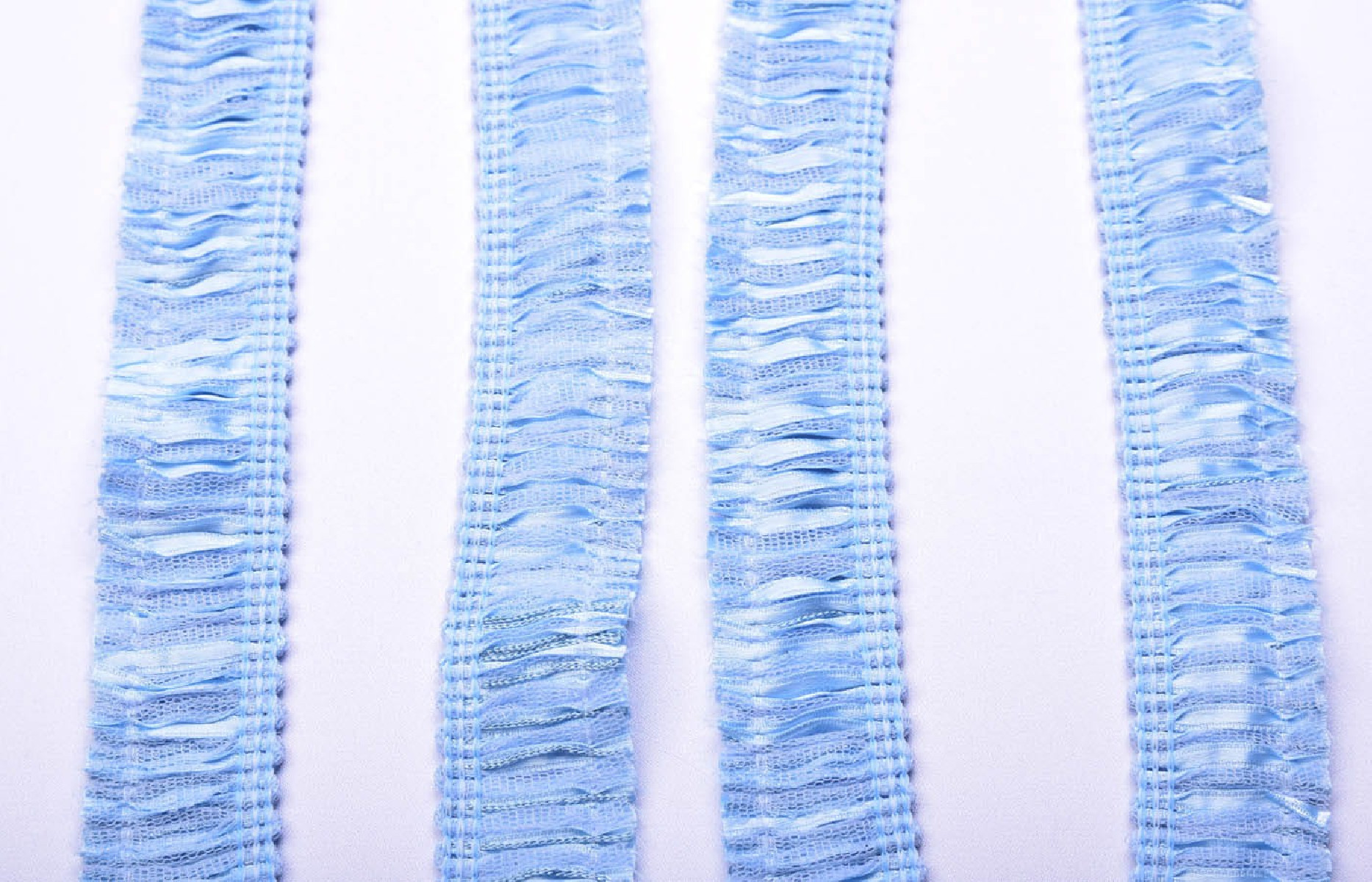 Haberdashery szalag kék színben, ideális befejezésekhez és kiegészítőkhöz.