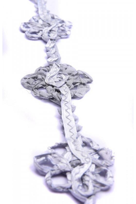 Haberdashery szalag szürke és ezüst színben, ideális befejezésekhez és kiegészítőkhöz.