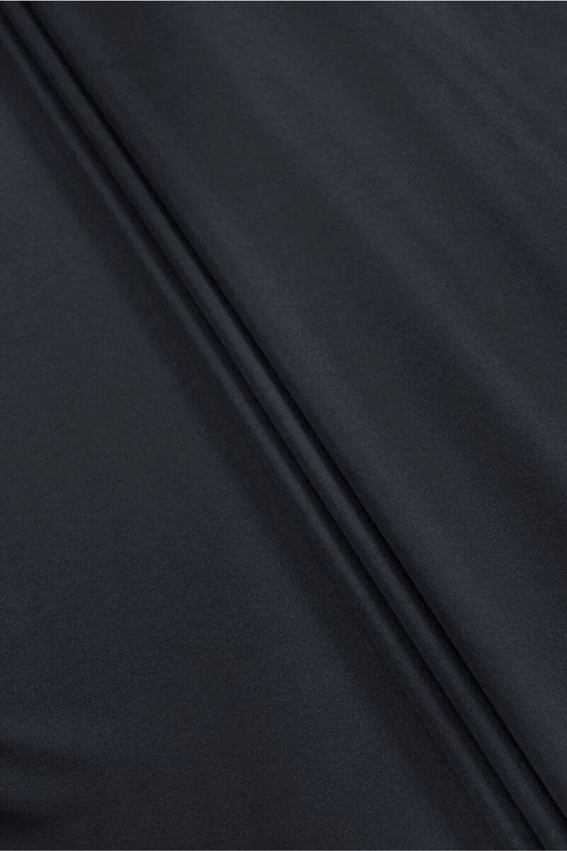 100% természetes gyapjúból szőtt olasz kabátszövet, nagyon sötét sötétkék színben. Az anyag puha fektetésű, rugalmatlan, közepes vastagságú. A gyapjúszövetek ideálisak felsőruházathoz (kabát, kabát, mellény), mert melegítenek és egyúttal lehetővé teszik a bőr lélegzését.