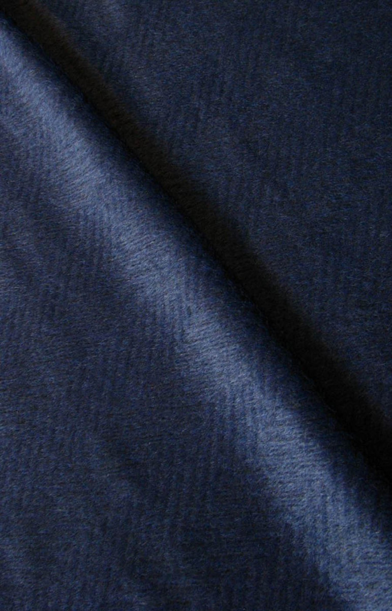 Olasz kabátszövet halszálkás motívummal, világos sötétkék színben, alpakából és természetes gyapjúból szőtt. Az alpaka gyapjút tartalmazó szövet kiváló légáteresztő képességgel és szigetelő tulajdonságokkal rendelkezik, hosszabb halom és nagyon puha. Tökéletes kabát, kabát, mellény varrásához. Vegytisztítás ajánlott.