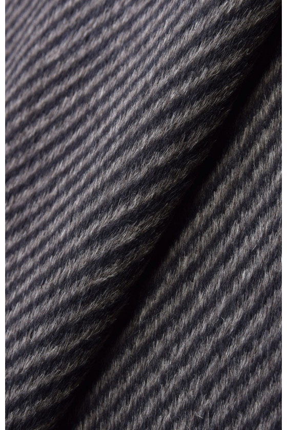 Olasz kabátszövet kis csíkokkal, barna és szürke színben, alpakából szőtt, kasmír keverékével. Az alpaka gyapjút tartalmazó szövet kiváló légáteresztő képességgel és szigetelő tulajdonságokkal rendelkezik, hosszabb halom és nagyon puha. Tökéletes kabát, kabát, mellény varrásához.