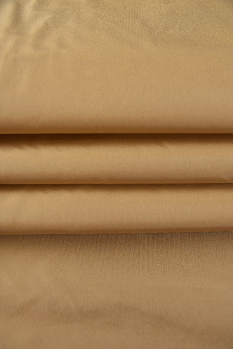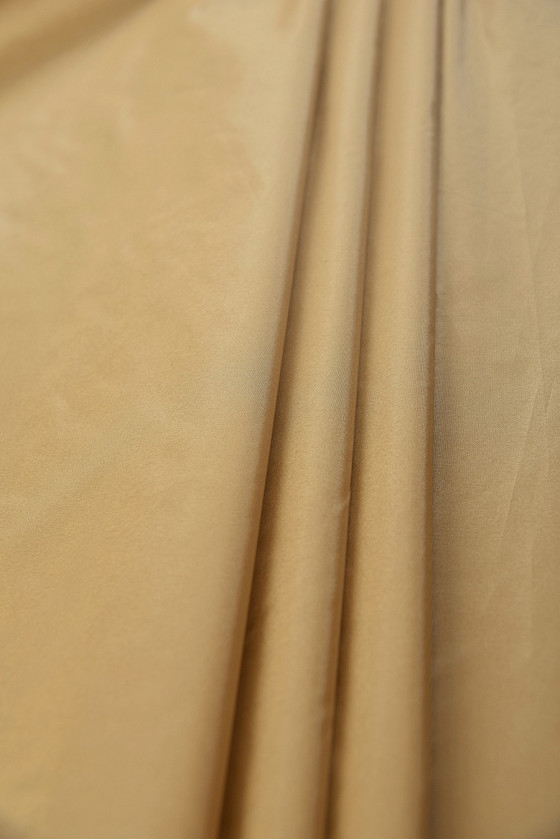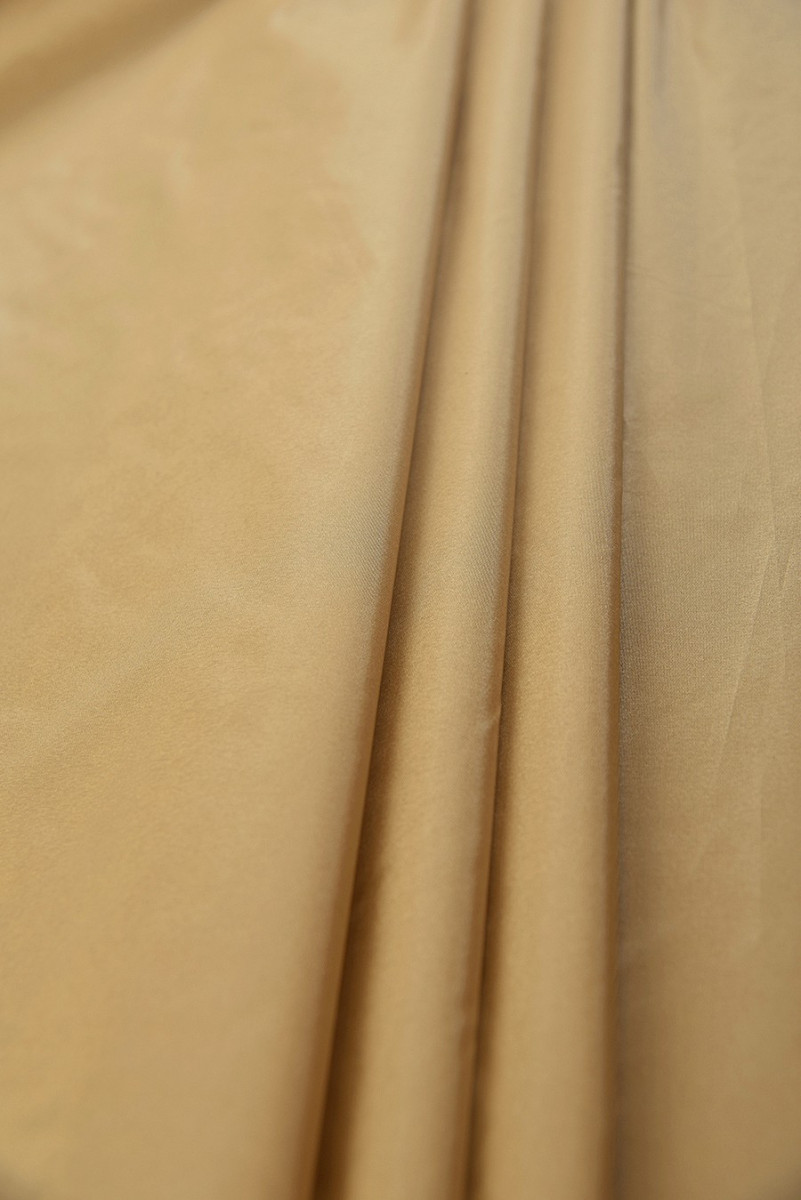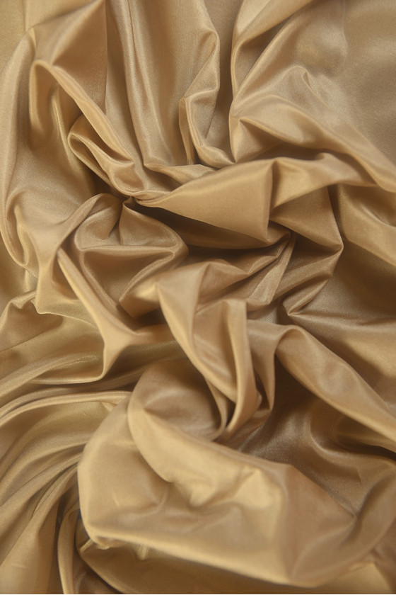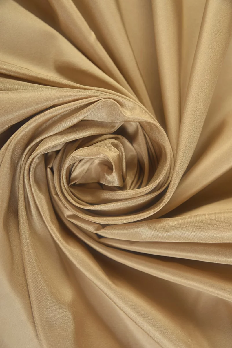 A sötét bézs taft (kávé tejjel) sima, fényes és enyhén merev anyag. Tökéletes elegáns formális ruhákhoz - ruhákhoz, szoknyákhoz és vékony kabátokhoz.