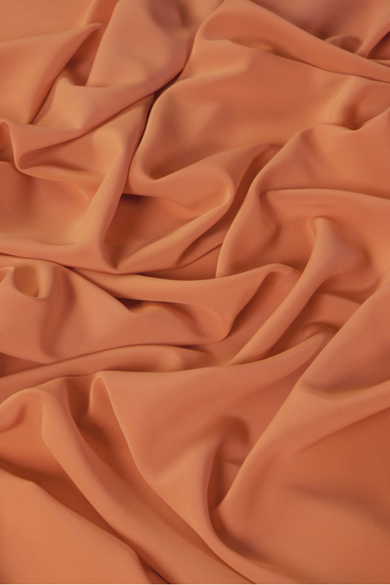 Olasz, rugalmas viszkóz szövet narancssárga színben. Puha, áramló, enyhén átlátszó, csúszós anyag - tökéletes ruha, szoknya vagy blúz varrásához.