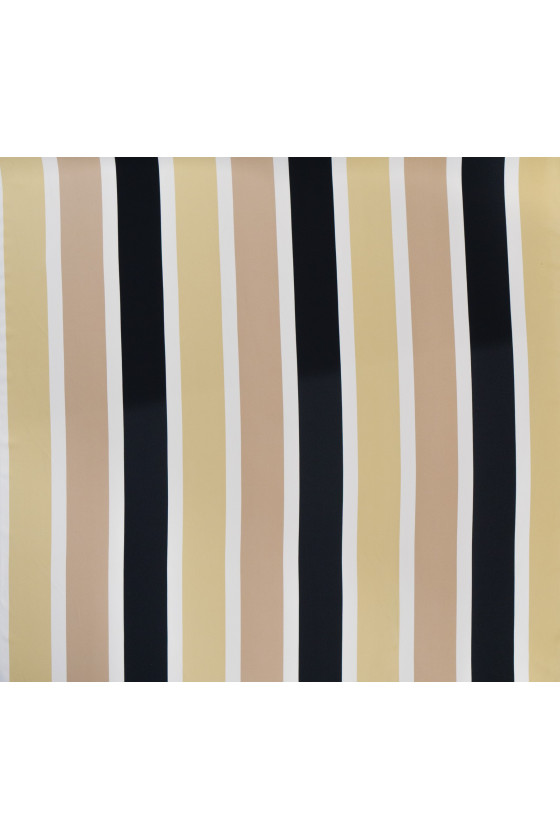 Olasz cadi viszkóz szövet 3,5 cm és 10 cm széles csíkokkal, a következő színekben: fekete, écru, bézs és sárga-bézs. A Cadi szövet átlátszatlan, húsos, áramló (nehéz).