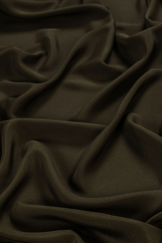 Olasz cadi ruhaszövet khakiban. A Cadi ruhaszövet átlátszatlan, húsos, áramló (nehéz) és rugalmatlan.