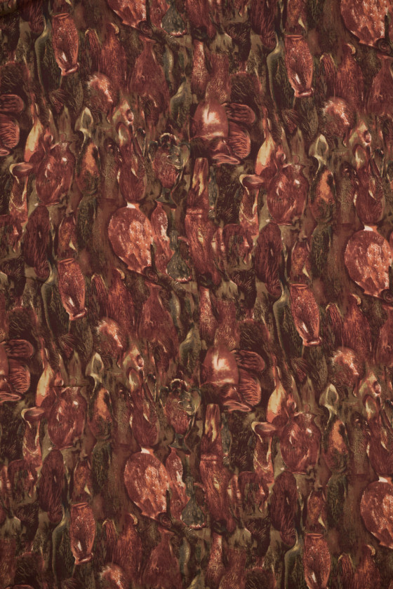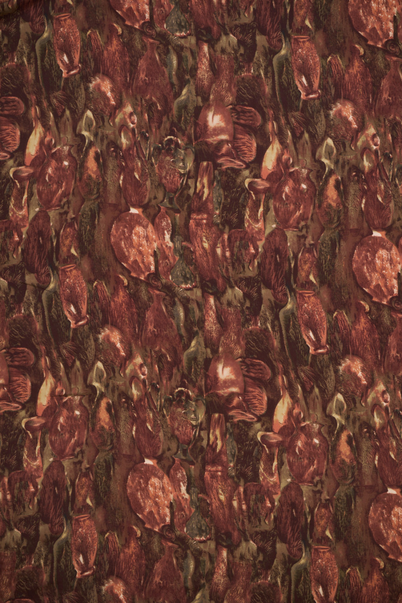 Olasz 100% viszkóz szövet, homályos növényzet motívumával, barna és olívazöld színben. A szövet áramló, könnyű, nagyon kellemes tapintású, átlátszatlan és finoman működik a szálakon. Tökéletes blúz, szoknya és ruha varrására.