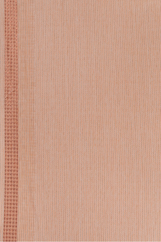Olasz jacquard jelmez szövet kupon méretben 80cm*145cm. Érdekes motívum a szürke-lazac színű kis, vízszintes csíkokból. A kupon dekoratív, 7 cm széles szegéllyel van ellátva, és emellett fényes rézszállal díszítik, ami eleganciát kölcsönöz neki. Az anyag vastagabb, kissé merev, domború szövéssel - tökéletes szoknya, jelmez, ruha varrásához.