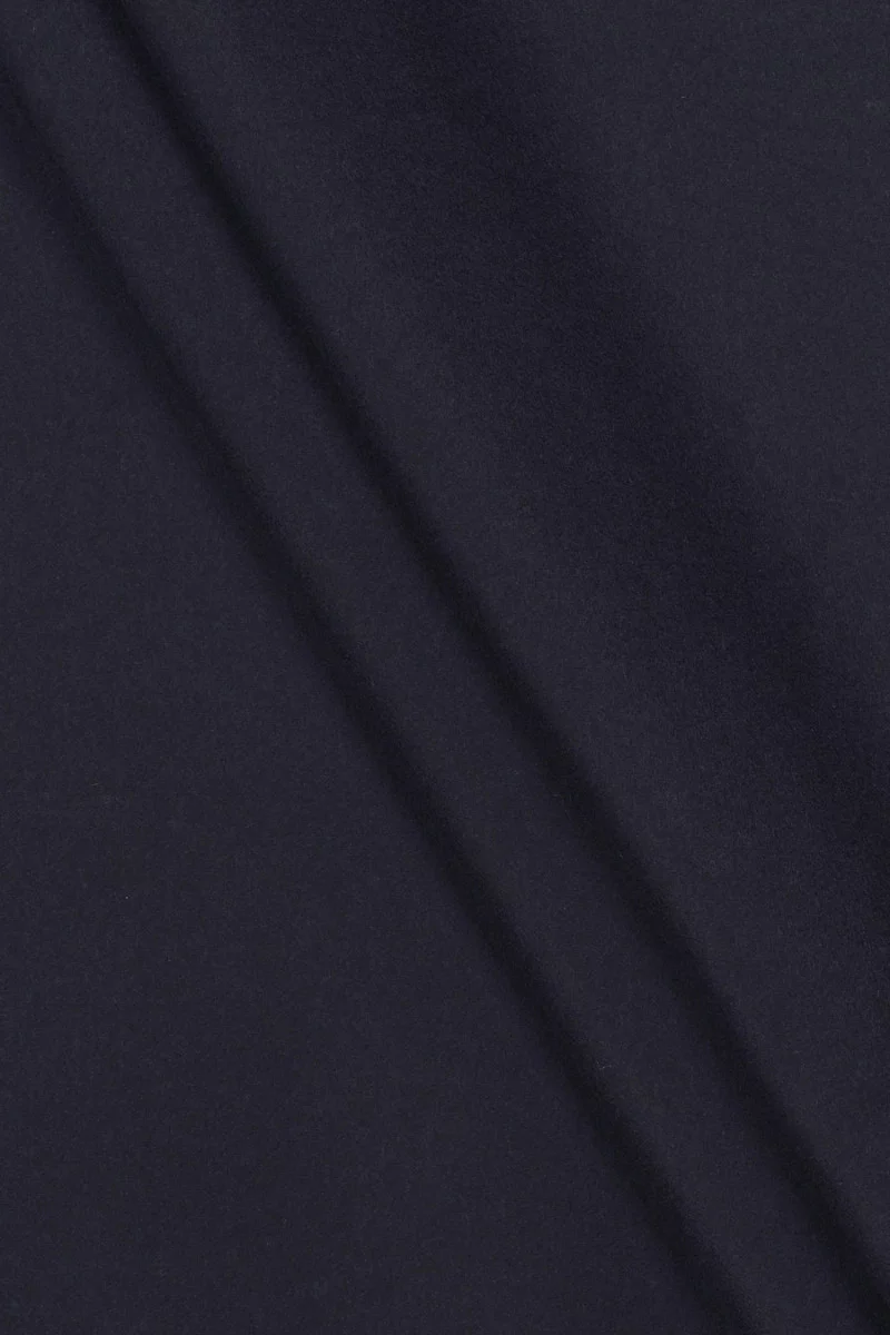 Itāļu mētelis vilna ar poliamīda maisījumu tumši tumši zilā krāsā. Ļoti mīksts, cēls audums ar smalku sarža pinumu un gludu struktūru, lieliski piemērots rudens-ziemas mēteļa, jakas vai siltas vestes šūšanai. Dabisko šķiedru kombinācija ar sintētiskajām šķiedrām rada to, ka audums ir silts, bet tajā pašā laikā spēcīgs un izturīgs. Skaistā, klasiskā krāsa padara materiālu mūžīgu un vienmēr modernu.