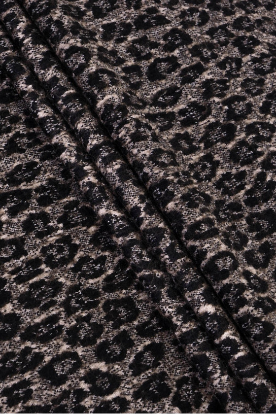 Itāļu audums ar melnu un smilškrāsas leoparda apdruku, austs no dabīgas vilnas, poliesters ar akrila maisījumu. Mīksts, mīksts audums - ideāli piemērots jakas, pončo, vestes, plānas mēteļa šūšanai.