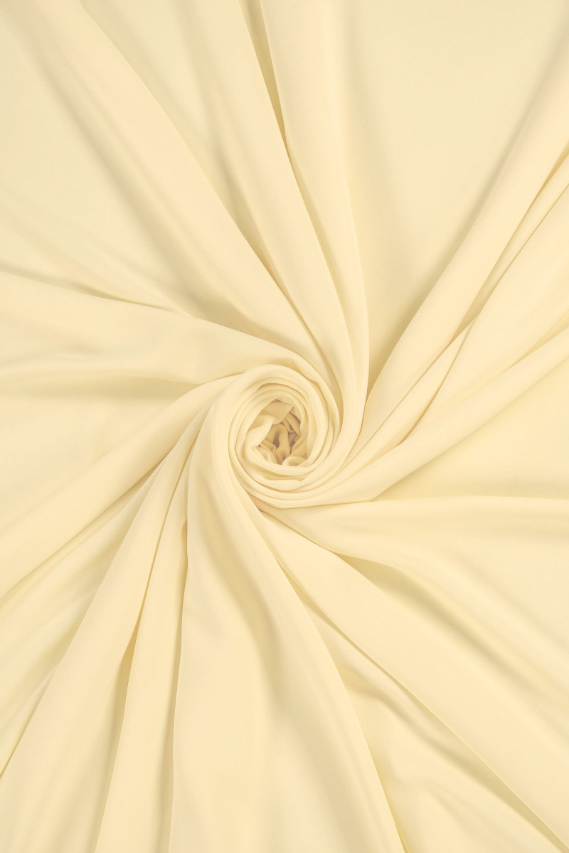 Itāļu cadi audums vaniļas krāsā. Audums ir mīksts, necaurspīdīgs, ļoti elastīgs un daļēji matēts. Tas pieguļ skaisti, maigi stingri. Ideāls piedāvājums kleitas, svārku un bikses izveidei.