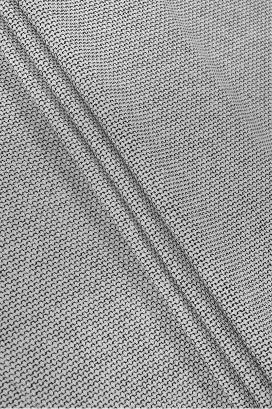 Brīvi austs kostīmu audums, austs no viskozes pavedieniem – balts, biezāks un plānāks – melns. Dabīgs, elpojošs, ļoti oriģināls audums. Mēs iesakām to interesantu kleitu, jaku, perforatoru šūšanai.