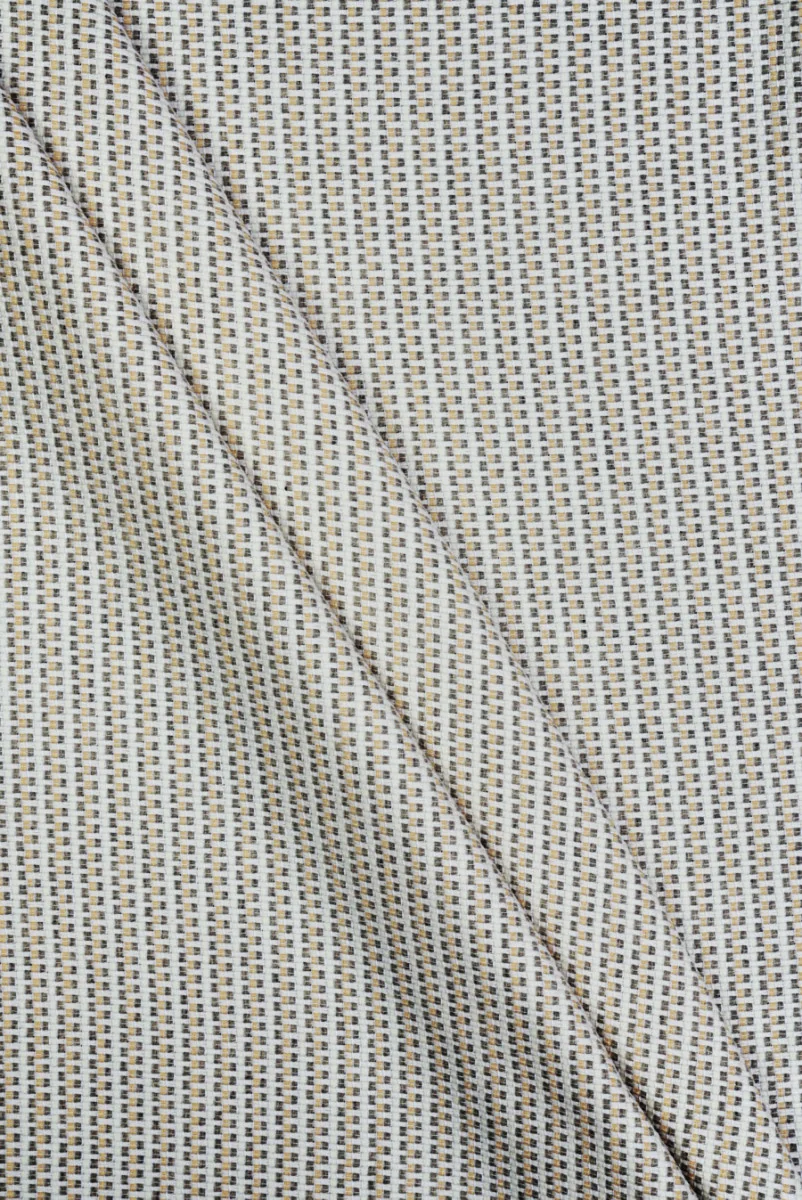Itāļu chanel kostīmu audums pasteļtoņos, kas austi no kokvilnas. Smalks savstarpēji saistītu pavedienu raksts ļoti gaišā smilškrāsā, gaiši oranžā un pelēkā bēšā krāsā. Audums ir mīksts, matēts, vidēja biezuma ar nedaudz vaļīgu pinumu. Tas ir ideāli piemērots jakai, svārkiem vai kleitai.