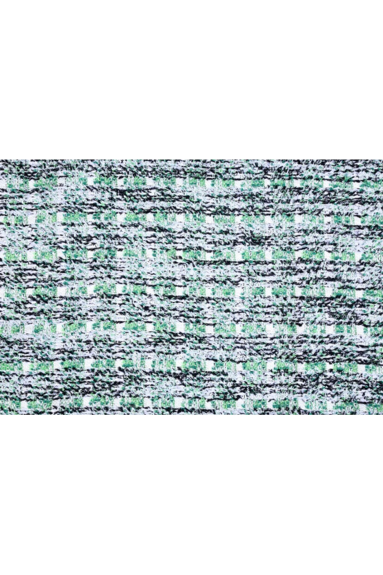 Oriģināls chanel kostīmu audums baltā, melnā un zaļā krāsā elegantiem komplektiem - jakas ar svārkiem un kleitām. Audums ir austs ar dabīgām šķiedrām, vilnu un viskozi, kas nodrošinās valkāšanas komfortu. Mēs iesakām izvēlēties oderi, ko varat atrast mūsu veikalā. Materiāls nav elastīgs.
