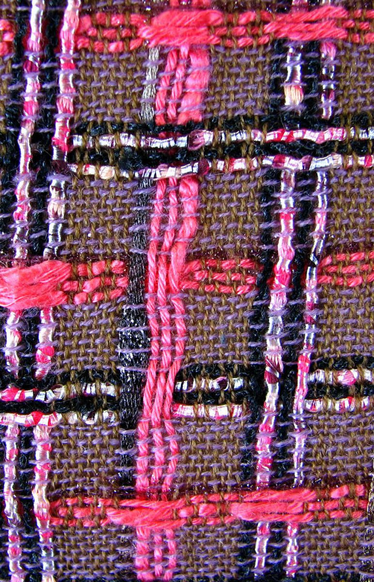 Chanel kostīmu audums, kas austs no koraļļu, netīri rozā, balta un melna pavedieniem kostīmiem, svārkiem vai kleitām. Audums ir stabils, prasa oderi.